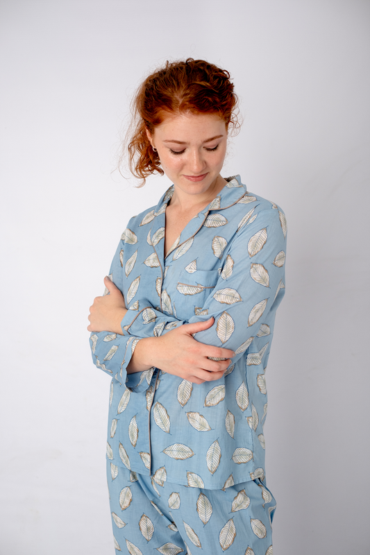 Classic PJ Long Sleeve Top and Long Pant | Blue Fox | 100% Indian Cotton
