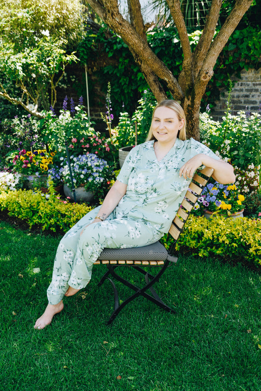 Short Sleeve Top and Ankle Length Pant | Sage Blue Floral | 100% Rayon
