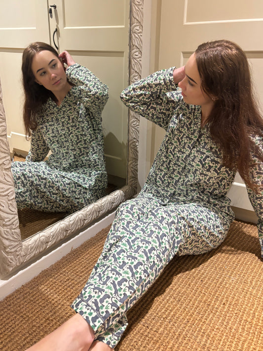 Long Sleeve Top and Long Pant | Grey Leopard | 100% Indian Cotton