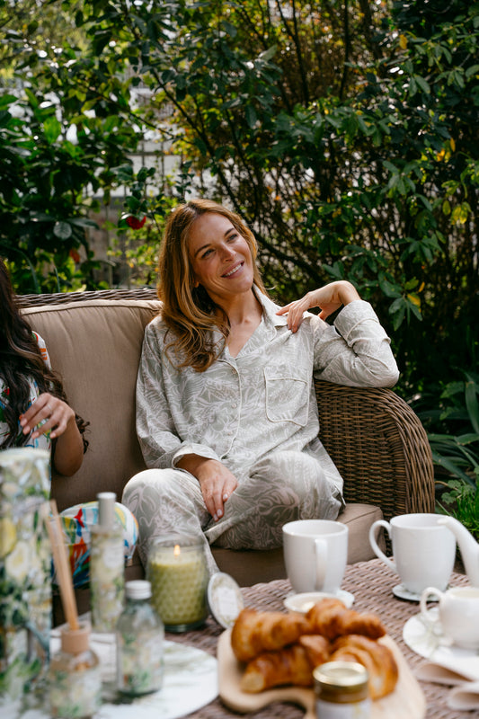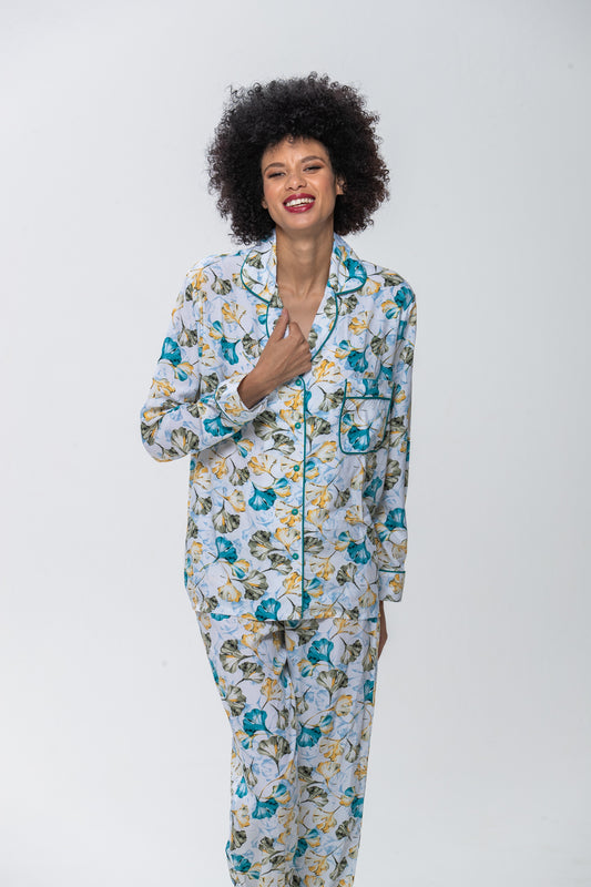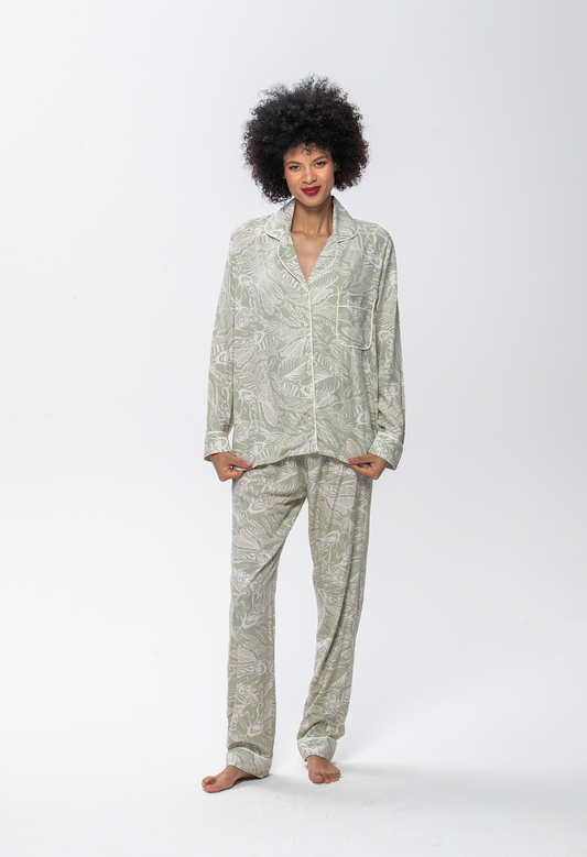 Long Sleeve Top & Pants | Sage Leaves | 100% Rayon