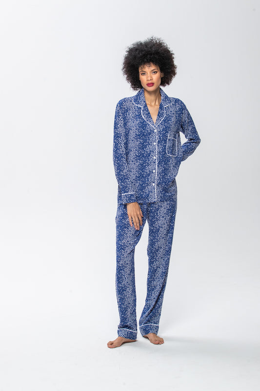 Long Sleeve Top & Pants | Navy with White Swirl | 100% Rayon