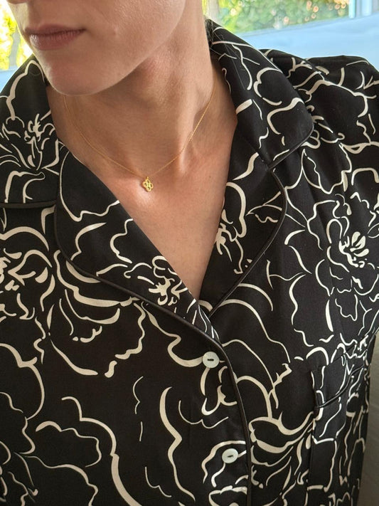 Long Sleeve Top and Long Pant | Black with Ivory Outline Floral | 100% Rayon