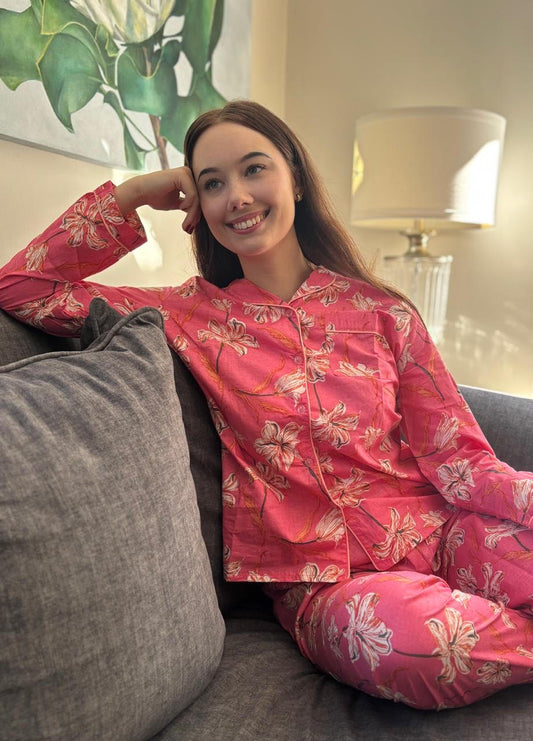 Long Sleeve Top and Long Pant | Coral Flower | 100% Indian Cotton