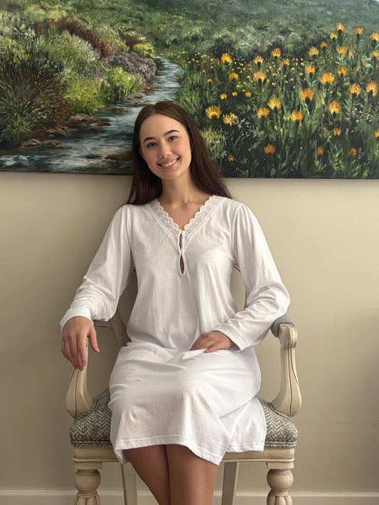 Sleepshirt | White with Brown Seaweed | 100% Indian Cotton