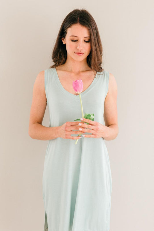 Sleeveless Sleepshirt | Sea Blue | 96% Rayon Knit & 4% Spandex