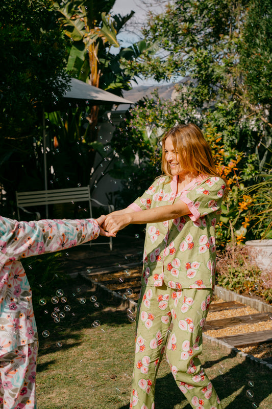 Short Sleeve Top and Long Pant | Green Fig | 100% Indian Cotton