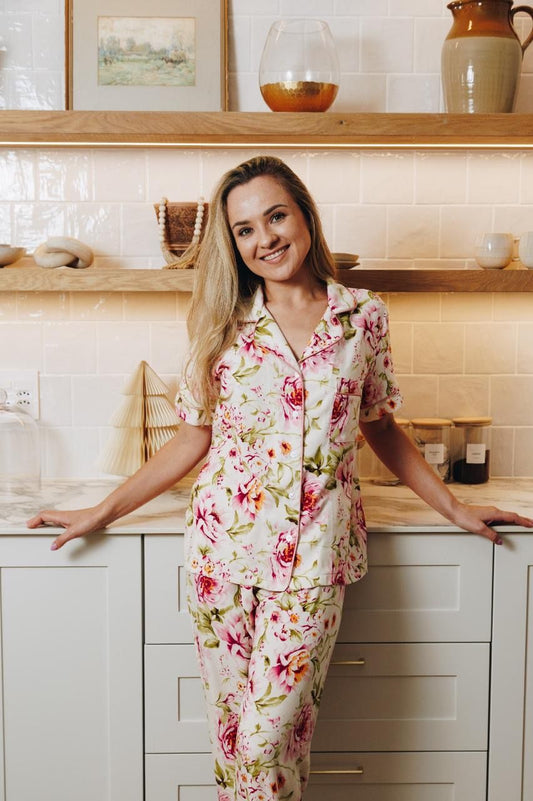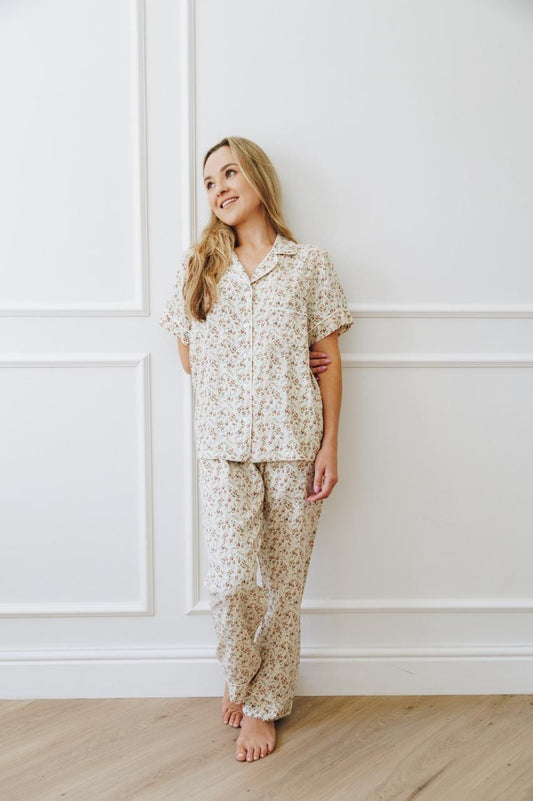 Short Sleeve Top and Ankle Length Pant | Botanical Floral | 100% Cotton