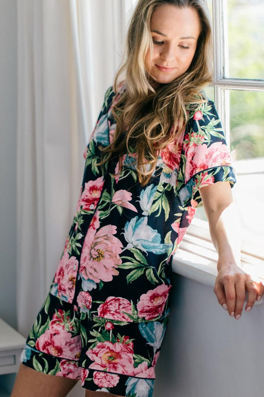 Short Sleeve Top and Ankle Length Pant | Peony Floral | 100% Rayon